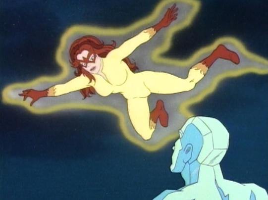 The episode does a decent job of introducing the young viewers to the other two Spider Friends, Iceman and Firestar. Iceman, of course, was already an established character from the X-Men comics, debuting about a year after Spidey did. In this version he’s presented as a somewhat humorous character…absent-minded at times and often using jokes and puns related to ice or cold. As for Firestar, this is her debut. No bones about it, she’s dang cute! When I first watched this show as a ten-year old, she was probably my first animated superhero crush. It’s ok to crush on animated characters, right? Unfortunately, at this point Firestar is still a little bit underdeveloped. She doesn’t really get much chance to truly demonstrate her powers in this first episode. I mean the first thing we see her do is to create a cloud of steam intended to make another girl’s mascara run when she starts flirting with Peter. Forget about Mary Jane, there’s a different red-head vying for the wall crawler’s affection in this series and she doesn’t like competition.