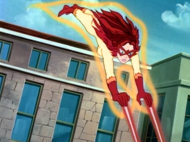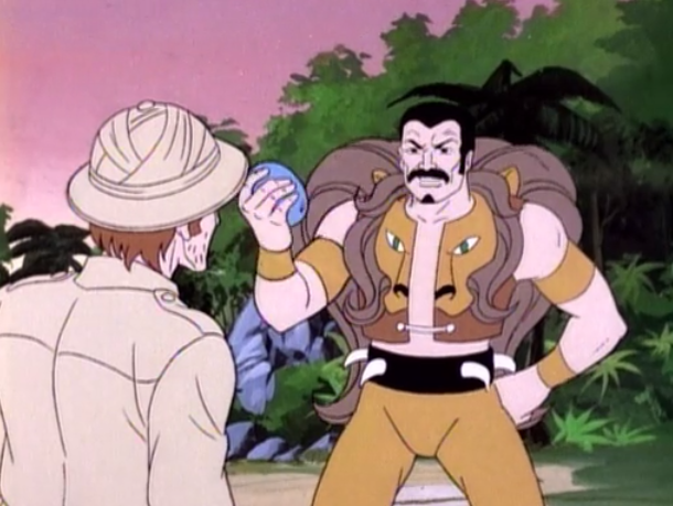 It is nice to see Firestar take a bit larger role in the proceedings this time, however it is a bit of a mixed blessing. She does get more opportunity to show off her powers more, but she also ends up slipping into the damsel in distress role for a good portion of the second half of the story. I don’t remember her consistently taking a back seat to the boys when I watched this as a kid. Of course, as a kid I wouldn’t have been looking for such things. Let’s hope that she gets to step forward a bit more as the series continues…and that Miss Lion doesn’t come with on many more adventures. Seriously, what is the point of having the froofy dog along for the ride? If the dog had superpowers that’d be different, but this time she was lucky she didn’t turn into T-Rex chow.