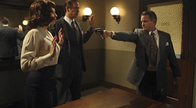 ‘Snafu’ delivers the goods in its penultimate episode before the Series Finale next week with great highs and lows, as well as bringing some series wide plot points to a satisfactory resolution like Carter’s vindication among her peers, and the exposure of Leviathan. The episode ends with another screamer of a cliffhanger as Dottie and the Ivchenko commit an act of terrorism by unleashing a gas in a movie theatre that enrages everyone into mass violence resulting in everyone’s death. I really hope that the finale has at least one fight scene between Carter & Dottie.