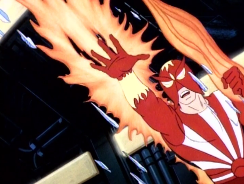 The episode opens with Peter, Bobby and Angelica looking at a meteor shower through their telescope. It’s a good thing they’re watching too, since they spot a meteor big enough to vaporize New York. It sounds like a job for Firestar, who has no trouble stopping the giant rock. Her heroic act, though, is spotted by a dude in a samurai outfit and his nephew Shiro Yoshida. Shiro is a mutant with the same powers as Firestar. Uncle needs both their powers to ignite his fusion reactor. Shiro agrees to find her since he believes the reactor will benefit all mankind. However, he doesn’t know that dear old uncle is really evil and wants both their powers to breathe life into his giant fire monster.
