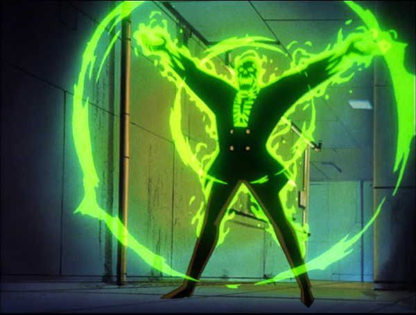 My main issue with the episode though is with the pacing which after a spirited opening warehouse fight it soon loses any kind of momentum and instead plods along with Paxton using the Bat signal (which also makes its final appearance) to ask for Terry’s help in finding his father who after publicly revealing himself as Blight after suffering a meltdown during a board meeting goes into hiding. I have to question though how hard it is to find a luminous skeleton?