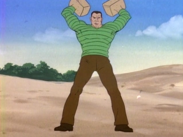 The episode begins with Peter, Bobby, and Anjelica enjoying a day at the beach. While they enjoy the sun, they hear a news report on the radio that the villainous Sandman has escaped from prison. They don’t have much time to worry about that, though, when a shark is spotted in the water pursuing none other than Flash Thompson. Our three heroes quickly dispatch with Jaws and change back to their alter egos. Problem is the Sandman is hiding among sand of the beach, so he spots Spidey change back into Peter. Now he knows the webslinger’s true identity.
