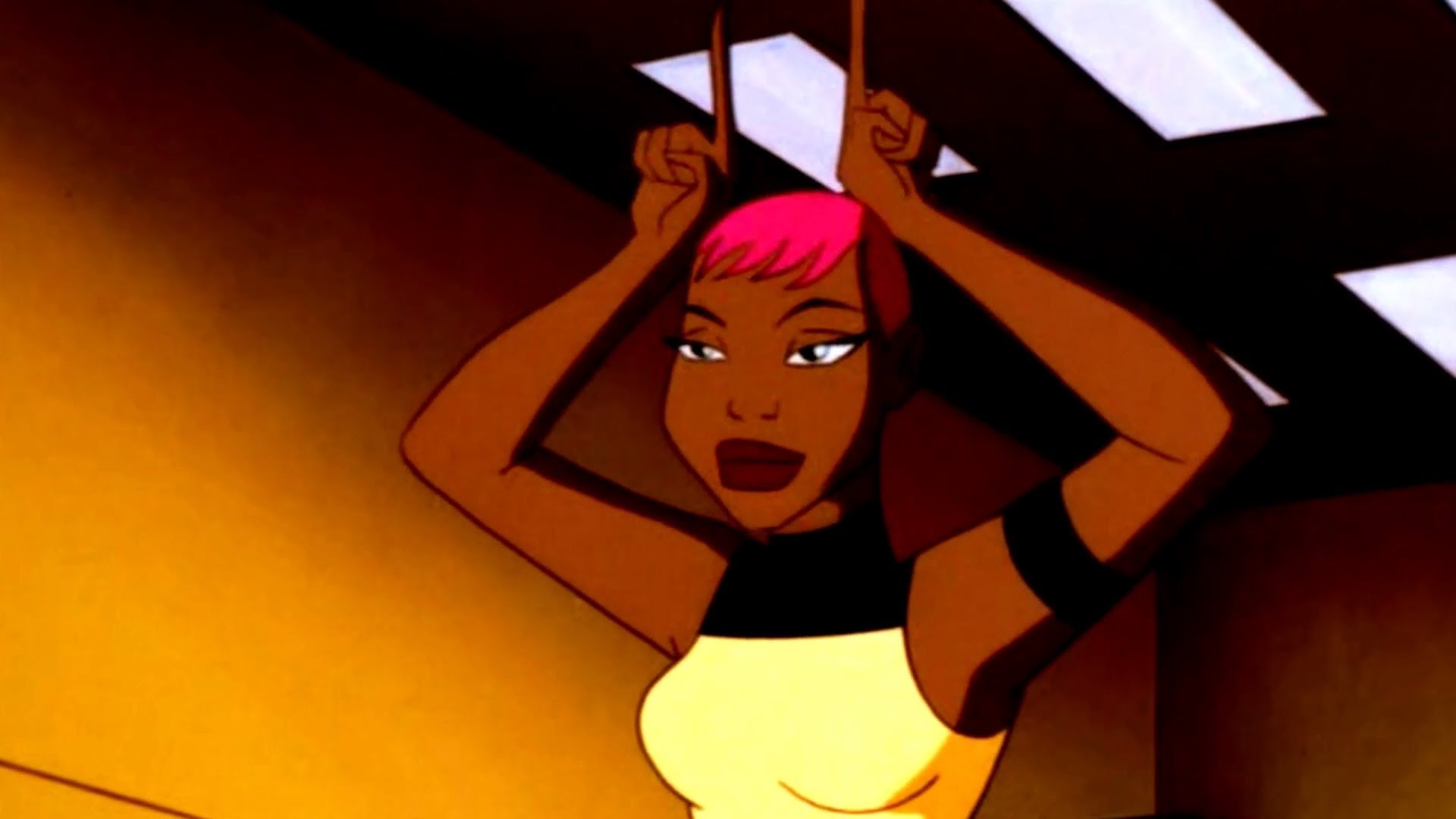 While the episode is essentially another Hamilton Hill High School set episode, the fact that this time it is used more as a setting than the location of the issues, helps it to rise above seemingly like we are watching Batman the high school years. In fact for this episode it only adds to it as the true identity of Terminal is teased out, while his motives for joining up with the Jokerz only further playing into this setting as the pressures to succeed are given as a motive. An idea which feels in many ways like the writers drawing inspiration from Asian cinema were the ideas of youths uprising as a result of such pressures has frequently been used, with a key example being “Battle Royale” and here it works just aswell within the setting of Neo-Gotham as we see Terminal having to deal with a disappointed mother who expects nothing but perfect grades from her son and inturn making a target of Max who currently dominates the top of the exam results.