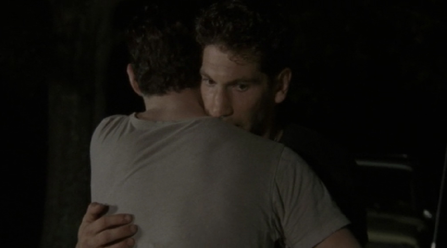 Back at the RV, Daryl can’t sleep due to Carol’s crying over a lost Sophia, so he and Andrea go scouting for her in the dark, with no luck. Upon their return, Dale returns Andrea’s gun to her and apologizes, while she claims she’s trying to forgive him. Back at the school, Shane hurts his ankle while trying to escape and Otis simply can’t go much further. The two are almost out of bullets and stamina, with a large group of Walkers bearing down on them. Hershel tells Lori and Rick that if he’s going to help Carl, it has to be immediate, equipment or not, just as Shane returns, alone, with everything they need. While Shane is in the bathroom cleaning up, he has a flashback to the school where, in a last moment of desperation, he shot Otis in the leg and left him behind to distract the Walkers as Shane escaped back to the truck with the equipment.