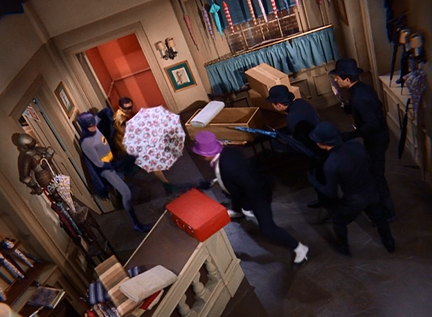 A big part of what makes this episode so much fun is that it is one that seems fully aware of just how absurd this series can get. Considering that, it’s a bit odd that this episode comes so early in the series’ run. Seeing the heroes pull crazy clues out of thin air when examining the umbrella is hilarious. But then, having the Penguin actually use these ideas to craft his crimes is just classic. This entire sequence seems to be saying to the audience, “yep, we know this is all really really silly, but just stick with us and you’ll have fun.”