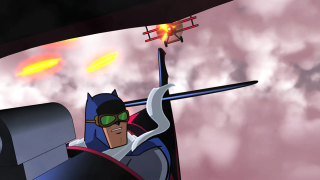 The teaser has Batman back in WWI flying a bi-plane of some troops engaged in good old fashioned trench warfare. Some bad guy with tentacles coming out of his face (in the rich tradition of Cthulu) is firing a laser canon at what I assume are the good guys. While Batman is attempting to give some air support, he enters into a dogfight with the Enemy Ace. After a brief conversation with his adversary about how unsporting the laser canon is, the two join forces to take it out. No explanation is offered as to why Batman is a WWI era pilot, but that’s ok, I’l just go with it.