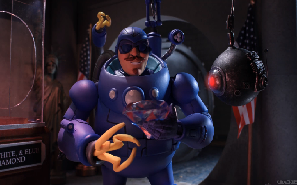 In the first episode we find the team facing off against two enemies, the Blue Menace and the Groaner, a technologically advanced cat burglar and an evil prop comic. A battle against the Blue Menace that leaves the Washington monument destroyed and the public asking if we still need a League of Freedom. The Senate believes that Rex has lost control of his team and that they are no longer worth the large sums of money they are paid to keep America free…er.