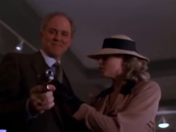 The episode centers on Lou Spinelli, an ad exec who was once a criminal but received plastic surgery from his friend Oscar (John Lithgow). His past catches up with him when he gets a call from his wife Betty (Isabella Rossellini, daughter of Bogart’s Casablanca costar Ingrid Bergman) who reveals she knows he’s alive. Lou races home, learns he’s been double crossed by Oscar, and promptly gets murdered. This all happens well before the midpoint so there are more twists yet to come.