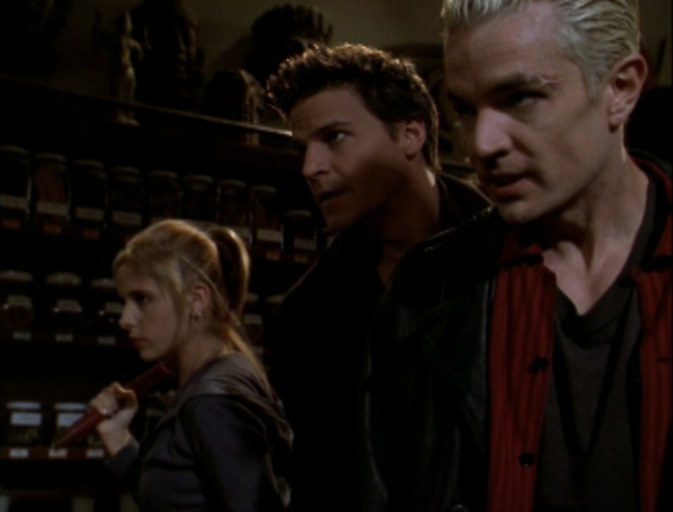 If anything this episode could be seen as the start of Spike becoming more of a main character than a villain of the week, no doubt thanks to the potential for his character being realised through this episode, yet still requiring a few more things to happen before he could become a member of the Scoobies which surprisingly he would by Season 5, a move that I don’t think anyone saw happening. Yes it is strange to see him not working on some scheme but instead genuinely trying to deal with his heartbreak, but the fun really is in how he goes about doing this, especially as we still can’t essentially trust him so to see him taking coffee with Buffy’s mum your never sure what way it’s going to go though it does give us the great scene of him pretending to bite her to aggravate Angel who is still locked out of Buffy’s house.