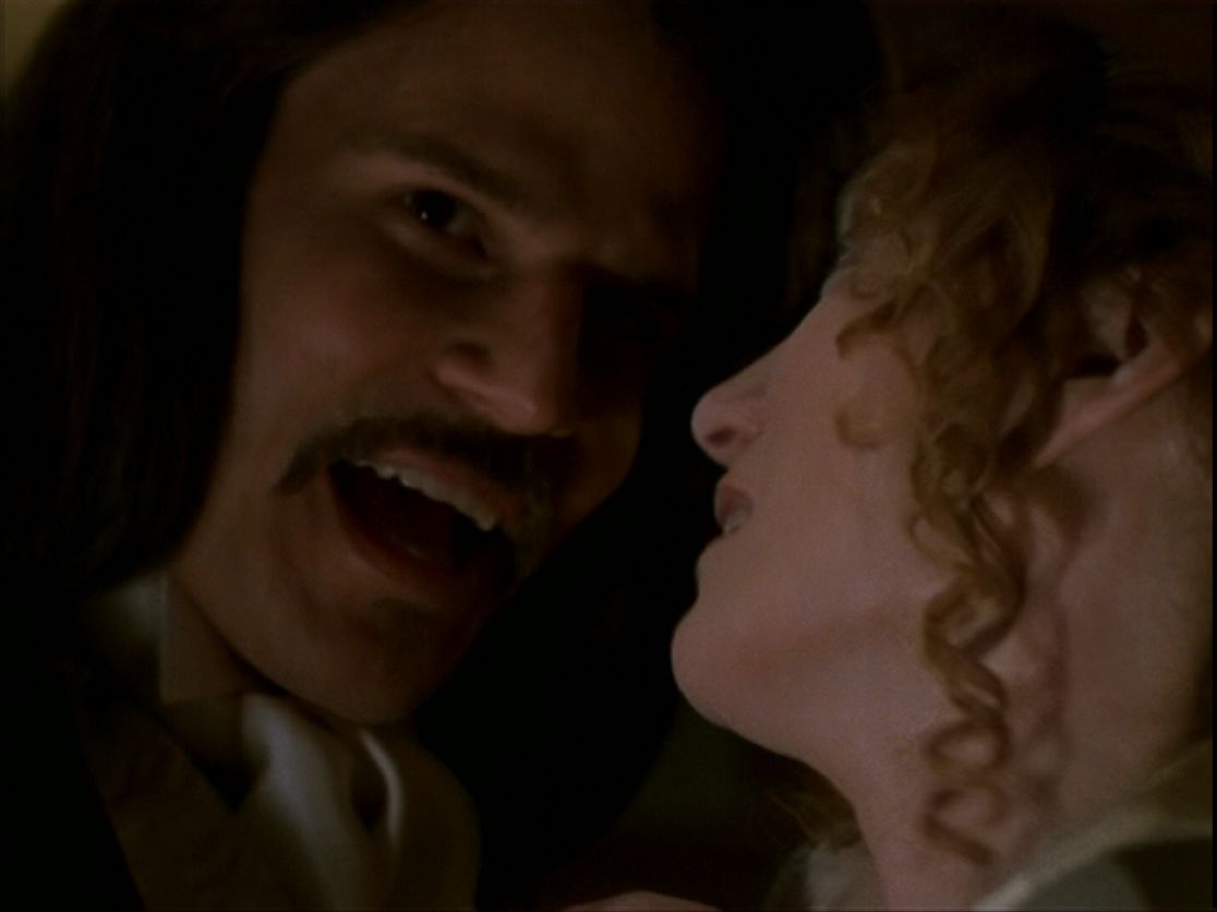 One of the main focuses of this episode is to start filling us in on Angel’s backstory as we get flashbacks to 1838 Ireland and London while he was still evil with the victims of this period aswell as his more recent turn to the dark side all coming back to haunt him, with the ghost of Jenny Calender in particular urging him to kill Buffy to release him from his pain. Of course Angel is unable to bring himself to do such a thing and instead plots to kill himself by waiting for the sun to come up, while also seeking to make amends with Giles for killing Jenny. These scenes between Giles and Angel are one of the scattering of few good moments that this episode has, with Giles pulling a surprise crossbow on him while truly keeping the audience on edge as he somehow manages to keep a calm and cool demeanour throughout this exchange.