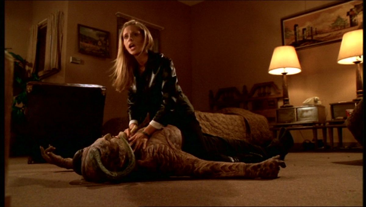 Interestingly Anthony Stewart Head has confessed that he is extremely comfortable in high heels which I guess was handy for his Fyarl demon transformation which also requires him to chase after Maggie Walsh in one of the best moments of the episode as he finds a way to embrace his demonic appearance. He would get to further embrace this love of heels when he played Dr. Frank-N-Furter in a stage production of Rocky Horror in which also got to show off his ability to dance in heels aswell!
