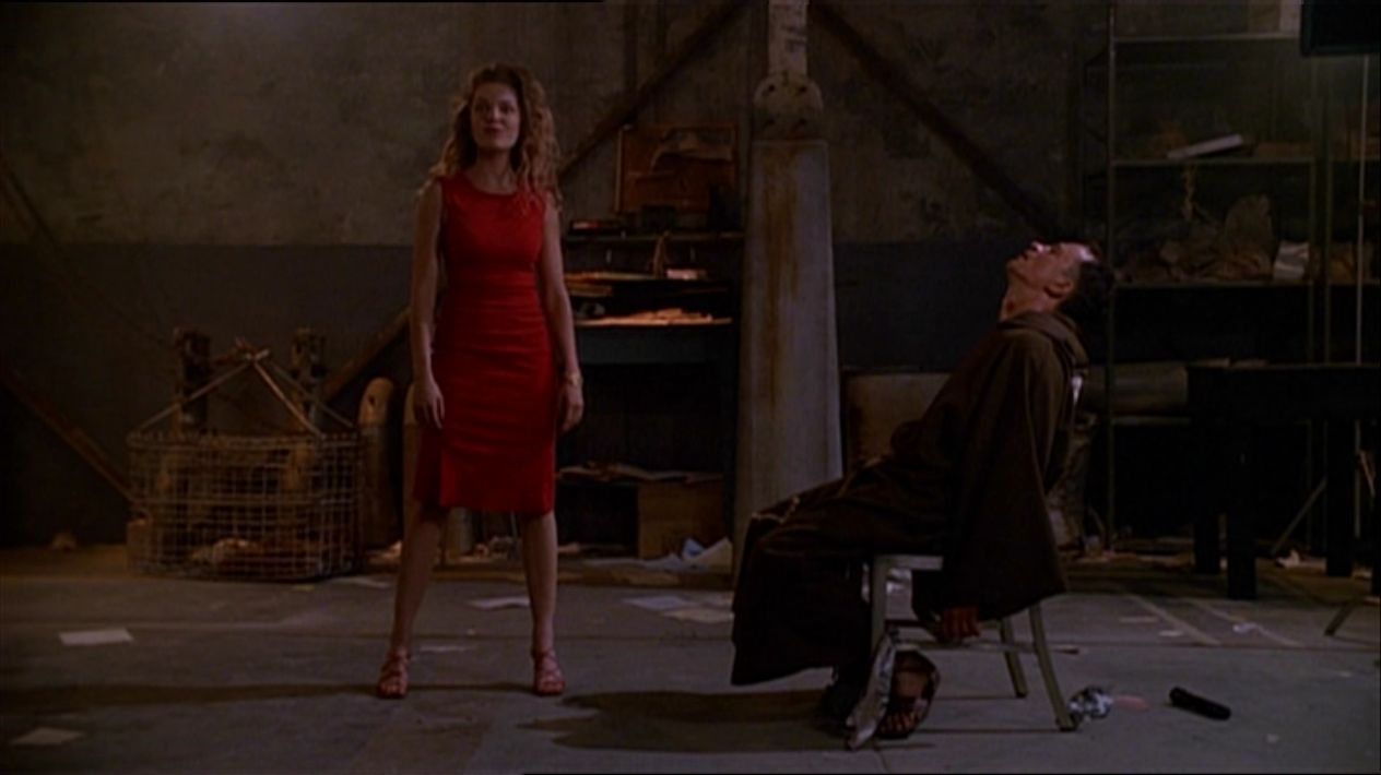 If you were keeping track of the Buffy big bad’s “Glory” would really be the high water mark for the show as really its all downhill from here and while we might only get a small sample of her in this episode its enough to make her an intergrating opponent for Buffy. For one Glory looks like she just came out of the valley with her red dress and heels get up and despite her appearance she also has superhuman strength and toughness that not only see’s her battering Buffy with ease during the first confrontation at the episode climax which in a rarity for Buffy actually sees her running away knowing that she is outmatched by Glory. If that wasn’t enough it become clear here that she is also responsible for the sudden increase in crazies around Sunnydale, which are a by product of having their lifeforce sucked from their bodies by Glory. The fun aspect to her character though is how childlike she is with her emotions as seen at the end of the episode where her tantrum collapses the warehouse on herself.