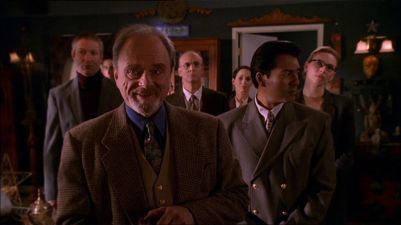 Continuing the upbeat mood of the previous episode “Triangle” this week Buffy and the Scoobies find themselves under the scrutiny of the Watchers Council who have returned to Sunnydale with information on Glory, only they won’t share this information until they have carried out a review of Buffy’s skills to see if she is able to handle it. Considering the fact that the last time the council were in Sunnydale in “Helpless” they pitted Buffy against a psychotic vampire without her Slayer powers, its easy to understand why she is less than thrilled by their reappearance let alone the fact that they might be the only ones capable to finding the information she needs to defeat Glory. Still it’s funny to think that Buffy has officially been free of the Council since way back in Season 3 and while they have been given the occasional passing mention its been assumed that they have just been back in England though doing what its still unclear. Of course this doesn’t stop them steam rolling into Sunnydale lead by Senior Watcher Quentin Travers as they quickly take over the Magic box and start making demands while scrutinising every aspect of Buffy’s life including the Scoobies.