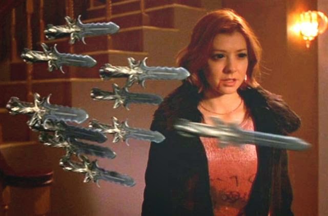 The finale of the episode has a revenge seeking Willow battling Glory as she unleashes her full magic, giving us a hint of “Dark Willow” as her eyes go black and even unleashes a bag of flying knives to little effect. You equally have to question how powerful a witch Willow is when she can be taken out by a damn chair. Stil Buffy is on hand to rescue her in a fight which does however show the Slayer adapting to fighting Glory as she comes off better here than any of their previous encounters.