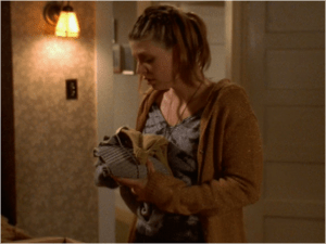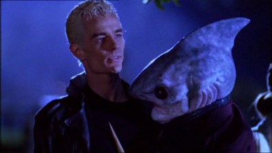 While the episode itself is great and has an equally great monster of the week in Teeth the Shark headed loan shark, the downside is in the practical make up effects for this character which essentially looks like they had a fantastic concept and zero time to pull it off and as such the character looks alittle static and too mask like, especially compared to some of the incredible creations we have seen on the show over the years and its a credit to Raymond O’ Connor that he’s able to bring this character to life the way he does. The nod back to the previous episode’s gambling for kittens once more comes into play here as Spike owes Teeth a kitten debt though why kittens are currency still is frustratingly not revealed. Sadly nothing can save Tara’s hair which is one of those 90’s casulties which somehow stumbled into 2001.