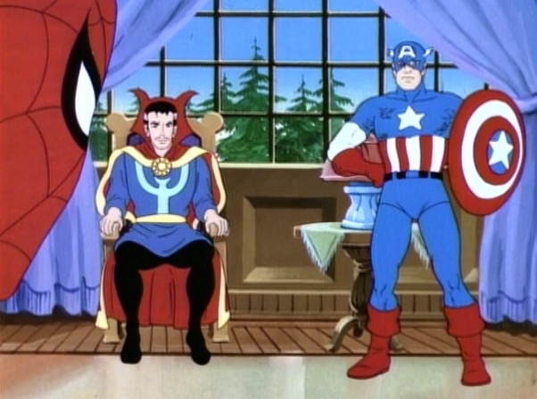 This time, a mysterious supervillain known as The Chameleon is on the loose. This villain can change his appearance to perfectly copy anyone and he has plans to make life difficult for Spidey, Iceman and Firestar. But that’s not enough for him. He also has his eye set on four other heroes, both famous and obscure: The Submariner, Doctor Strange, Shanna the Jungle Queen, and none other than Captain America himself. Each of the heroes gets a strange letter summoning them to Wolf Island Mansion for a “most unusual get together.” There’s one problem, though. Since Aunt May is visiting a friend with cats for the weekend, the Spider Friends have no choice but to bring the dog, Miss Lion, along for the trip. Continue reading Spider-Man and His Amazing Friends S:1 E:6